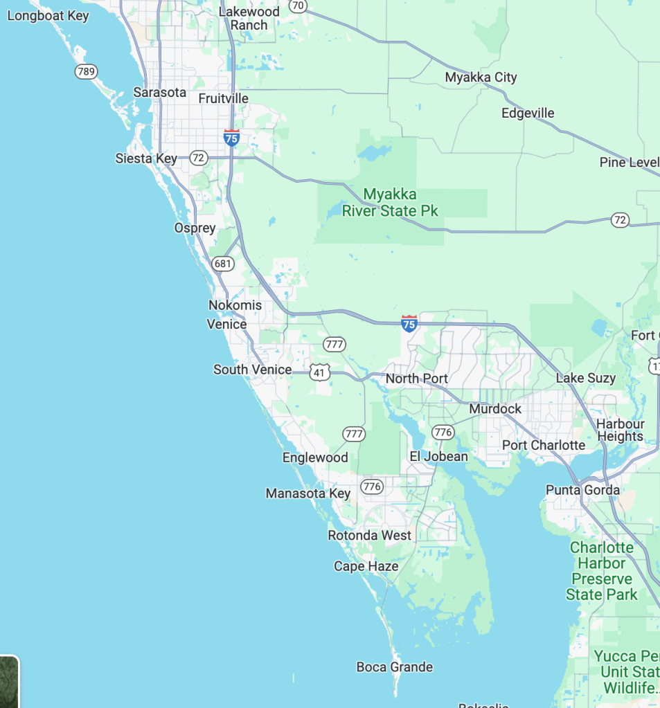 Located approximately 30 miles south of Venice, Boca Grande on Gasparilla Island is a serene and upscale destination. Known for its historic lighthouse and charming downtown, Boca Grande offers pristine beaches, excellent fishing opportunities, and scenic bike trails. The island’s peaceful ambiance makes it an ideal spot for a relaxing day trip.